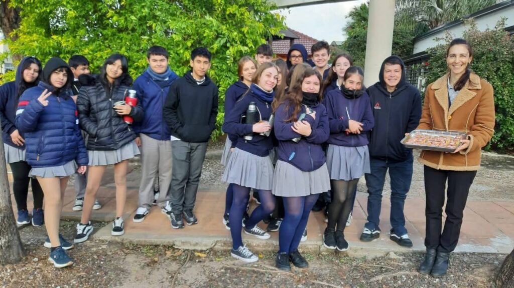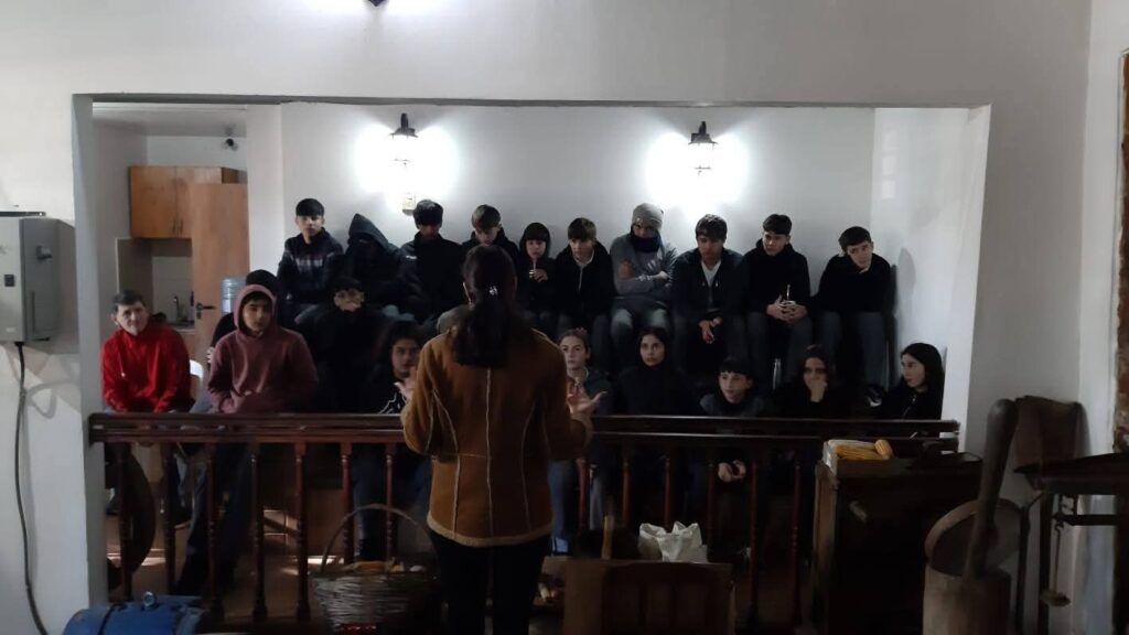 Los Prof. Manuela Percara, Fabián Confalonieri y alumnos de Escuela Secundaria Sandalio Olivetti N° 2 visitaron el Museo Molino Harinero Polo Olivetti de nuestra localidad.