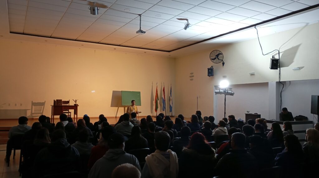«Me encanta ir a lugares donde nos reciben así y sobre todo trabajar con jóvenes digamos, que no tienen el acceso al teatro todo el tiempo, porque uno se da cuenta que las cosas funcionan cuando ve ese público que es inexperto, que devuelve, pero a la vez no es alguien que está viendo todo el tiempo teatro».