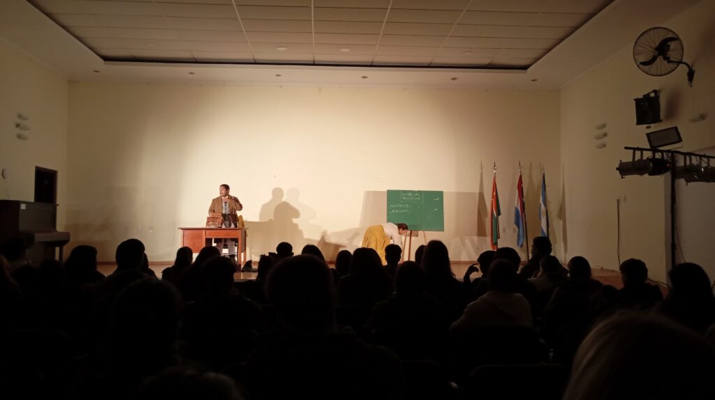En la noche de este jueves 12, el Centro Cultural de Villa del Rosario recibió la visita del Grupo de Teatro del Bardo (Paraná), el cual presentó la Obra teatral: «5438, un policial bien argentino», una obra dramática para adolescentes y adultos, un policial que intenta desentrañar misterios de una de las épocas más turbias de la historia de nuestro país, período de la mal llamada Campaña del Desierto.