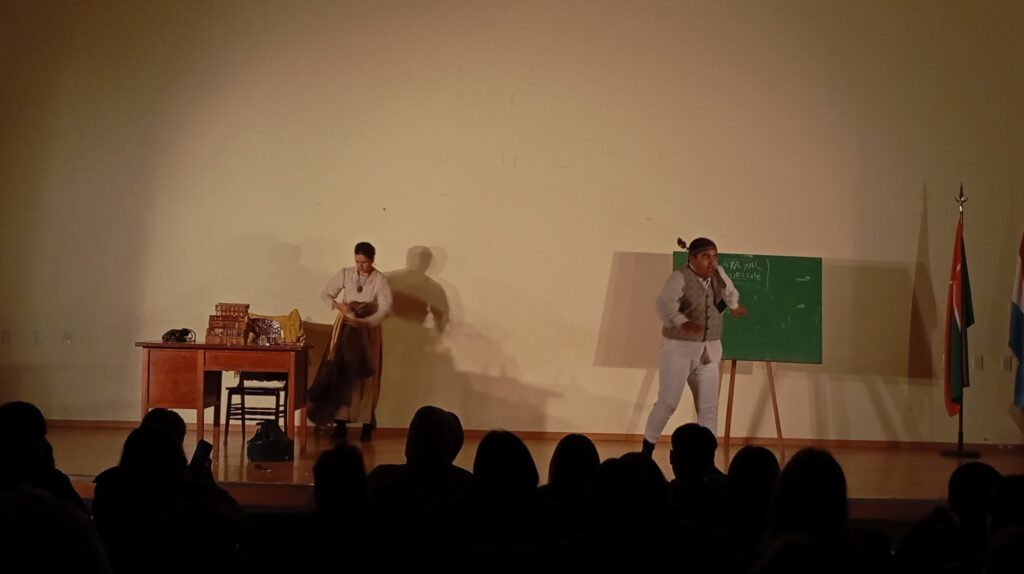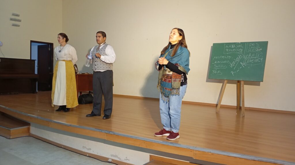 «Nosotros tenemos un grupo que tiene muchos años, entonces dentro de los proyectos estaba este de investigar un poco sobre la Campaña del Desierto y fue lo que hicimos. Al principio yo no estaba en el proyecto, pero después me lo convidan y fue muy lindo armarlo porque la verdad que la investigación y todo lo que hicimos para que suceda fue un proceso divertido, con mucho trabajo pero a la vez muy placentero y con la convicción también de trabajar una temática de la que no hablamos habitualmente en las escuelas, entonces poder ponerlo en tela de juicio, poder hablar sobre eso, entonces que el teatro también sea una herramienta educativa para ese público es muy interesante».