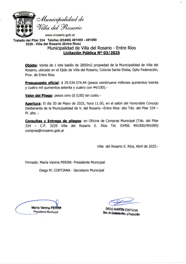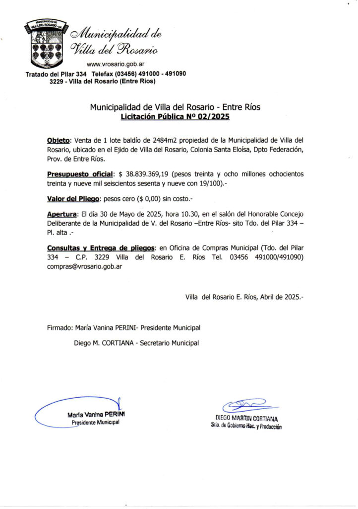 LICITACIONES PÚBLICAS – VENTA DE LOTES